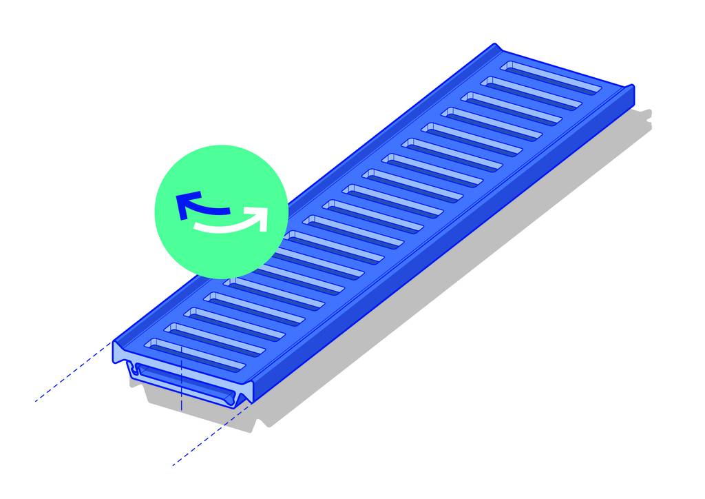 Barrette en polyamide anti-effet bilame pour rupture de pont thermique de profilés aluminium (menuiseries aluminium : fenêtres, portes et façades), avec zone d'isolation flexible permettant une dilatation différentielle entre le profilé intérieur et extérieur. Avantage : réduction de la déformation des profilés aluminium, due aux différences de température int/ext, pouvant provoquer un blocage du système d'ouverture/fermeture.