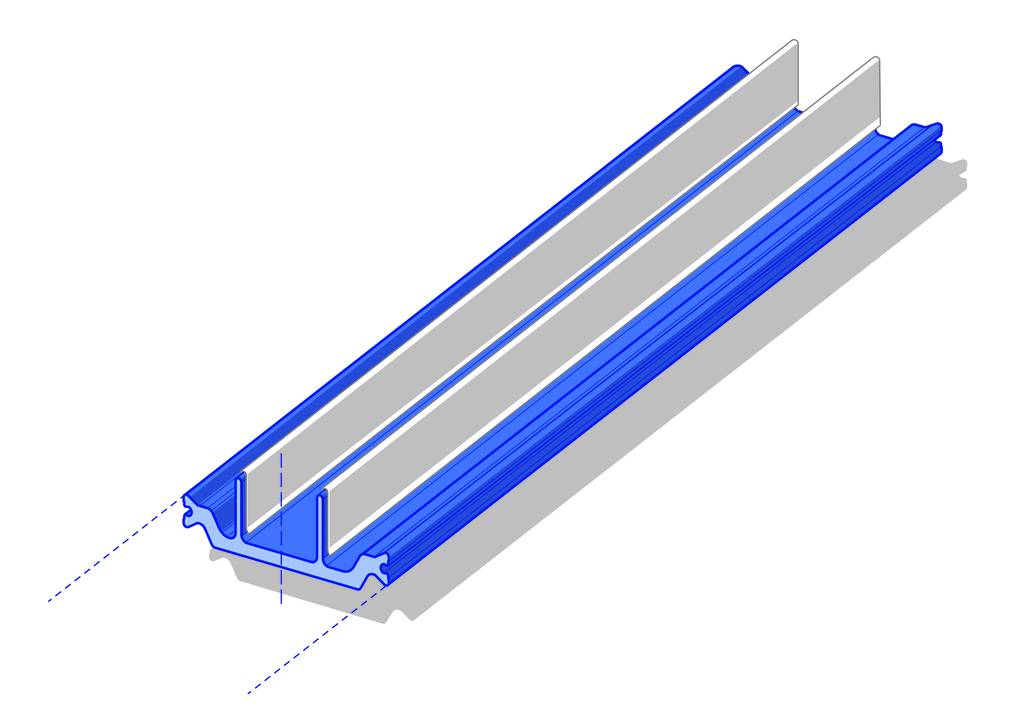 Barrette en polyamide avec Low-E Foil (feuille d'aluminium réfléchissante). Permet de répondre aux exigences des économies d'énergie et d'atteindre des valeurs thermiques basses.